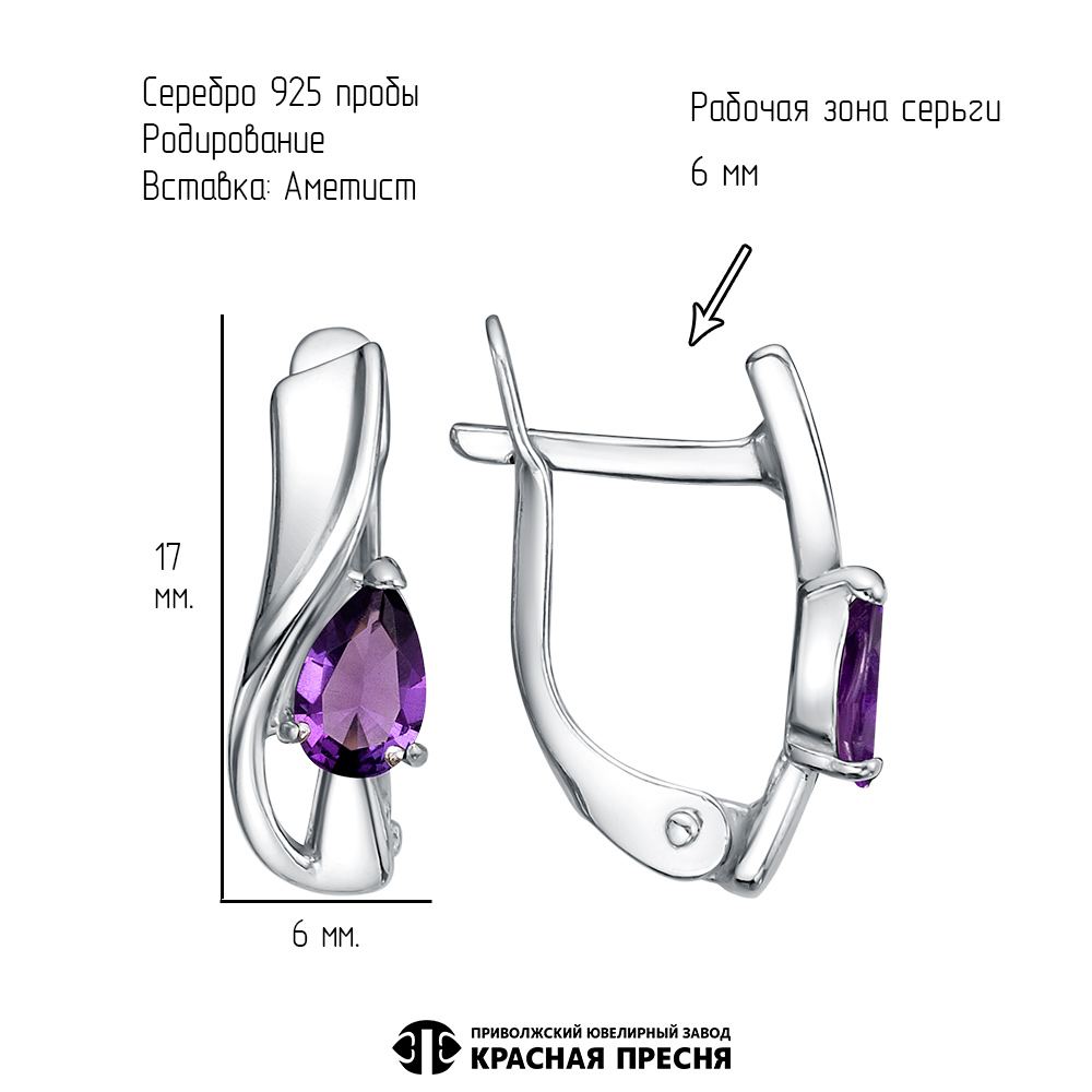 Характеристика вставок Аметист (полудрагоценный камень) 2шт