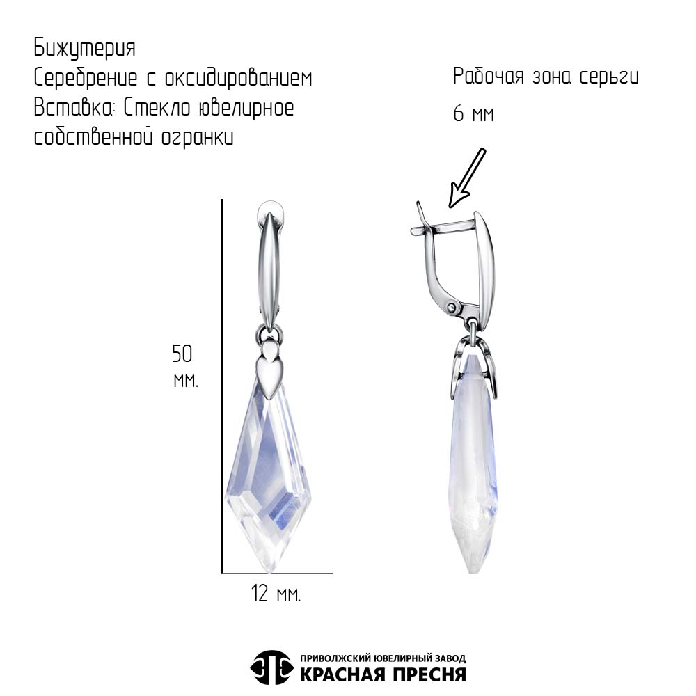 Характеристика вставок Стекло ювелирное собств. огранки Ромб 31х12х4мм 2шт