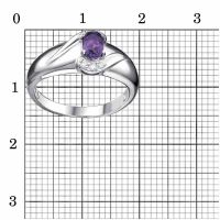 Характеристика вставок Фианит (недраг. камень) Круг 1,25мм 6шт; Аметист (полудрагоценный камень) 6х4мм 1шт