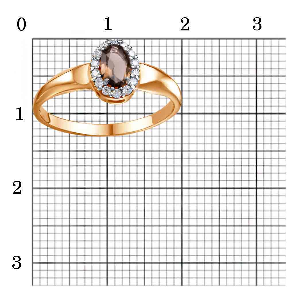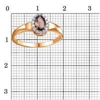 Характеристика вставок Дымчатый кварц Овал 0,3ct 6х4мм 1шт; Фианит (недраг. камень) Круг 1,25мм 14шт
