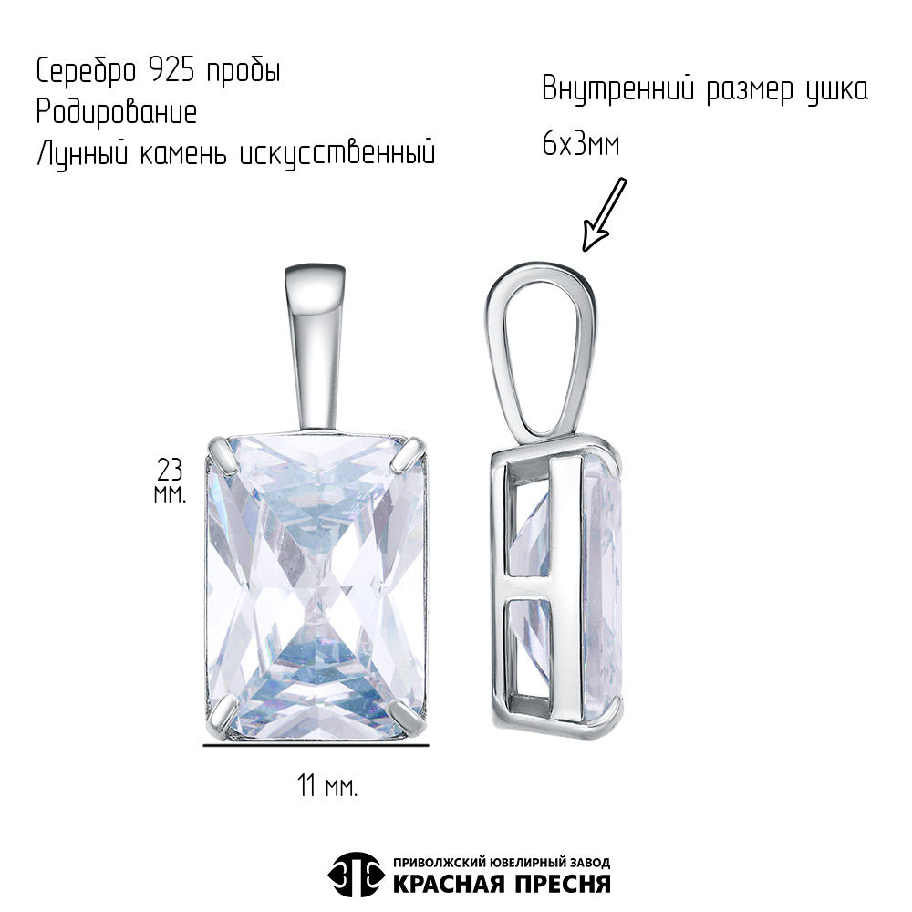Характеристика вставок Лунный камень (иск.) Прямоугольник 14.5х10.4х6.2мм 1шт