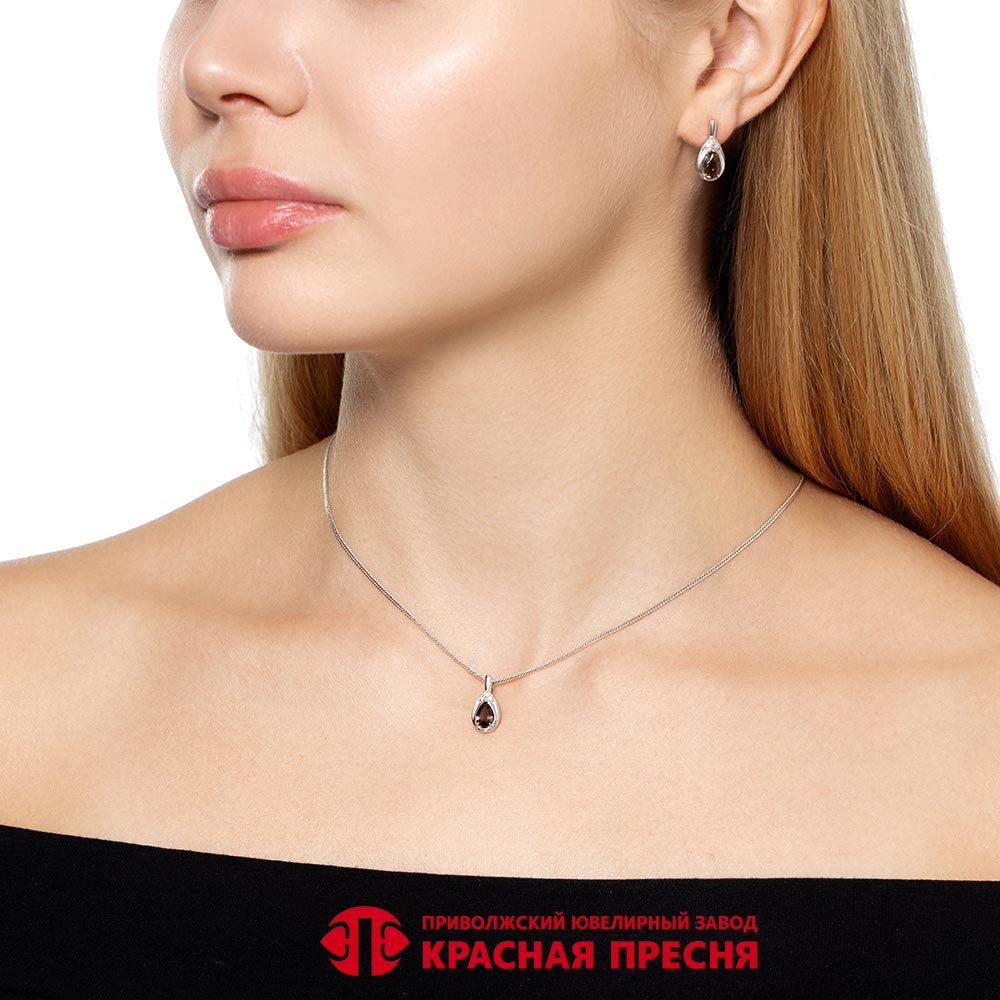Вставки Дымчатый кварц, Фианит (недрагоценный камень)