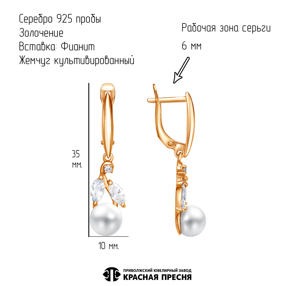 Вставки Культивированный жемчуг, Фианит (недрагоценный камень)